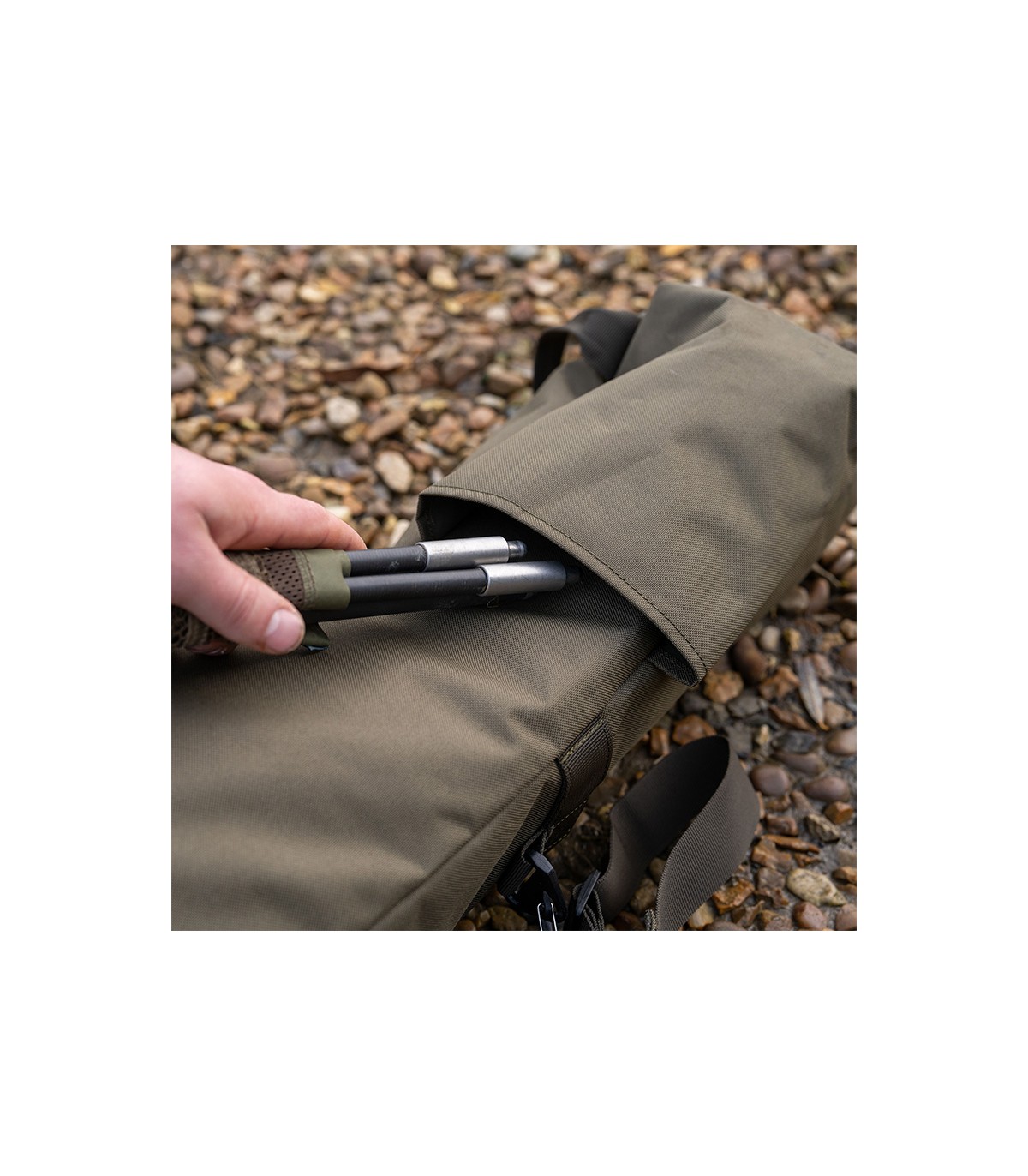 - Tasca sulla schiena per manici del guadino o pali lunghi antitempesta
