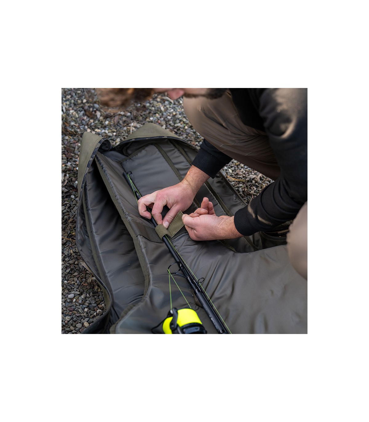 Le borse portacanne retrattili Avid RVS da 10 piedi offrono una protezione completa, imbottita e foderata, per due o tre canne retrattili con mulinello. Realizzate in resistente tessuto Oxford 600D impermeabile, con robuste cerniere da 10 mm e dettagli mimetici Avid. Dotate di una tasca portapiombi per un facile accesso e organizzazione, una tasca dorsale per i manici del guadino o per i pali antivento lunghi. Inoltre, una comoda tasca per picchetti o picchetti da distanza e un attacco laterale per una canna aggiuntiva. Fornite con una tracolla imbottita rimovibile per un trasporto comodo e a mani libere e maniglie rinforzate per un facile sollevamento e trasporto.