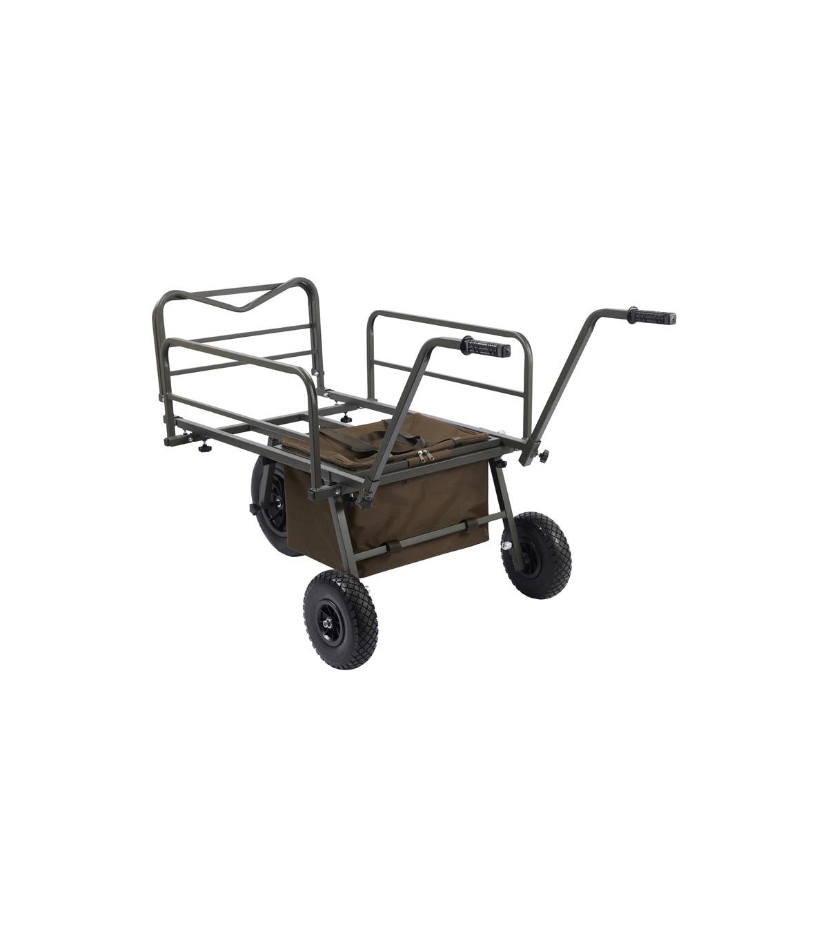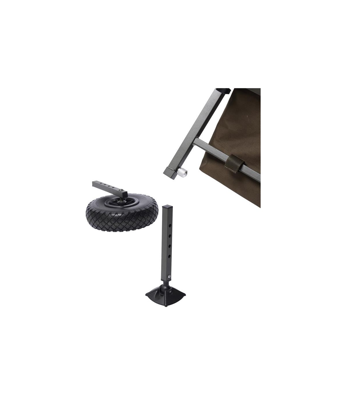 Grazie alle sue dimensioni compatte, è facile da piegare e si adatta a qualsiasi auto. L'ampio corpo con una recinzione regolabile sostiene in modo affidabile tutta la tua attrezzatura. Ruote in gomma larghe di alta qualità per affrontare terreni fangosi. La versione a tre ruote può essere facilmente convertita in una versione a ruota singola. È possibile installare gambe di supporto al posto delle ruote posteriori (incluse nella confezione). Borsa integrata per riporre l'attrezzatura necessaria (rimovibile).